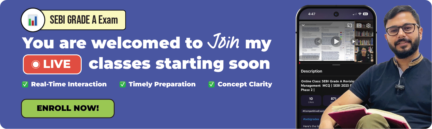 I am an ex-SBI Manager and educator with a JRF in Commerce & Management, known for simplifying regulatory body preparation through clarity, structure, and exam-centric guidance.
